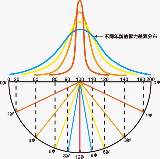 遗传分布、环境分布、遗传潜能与智力分布的关系图